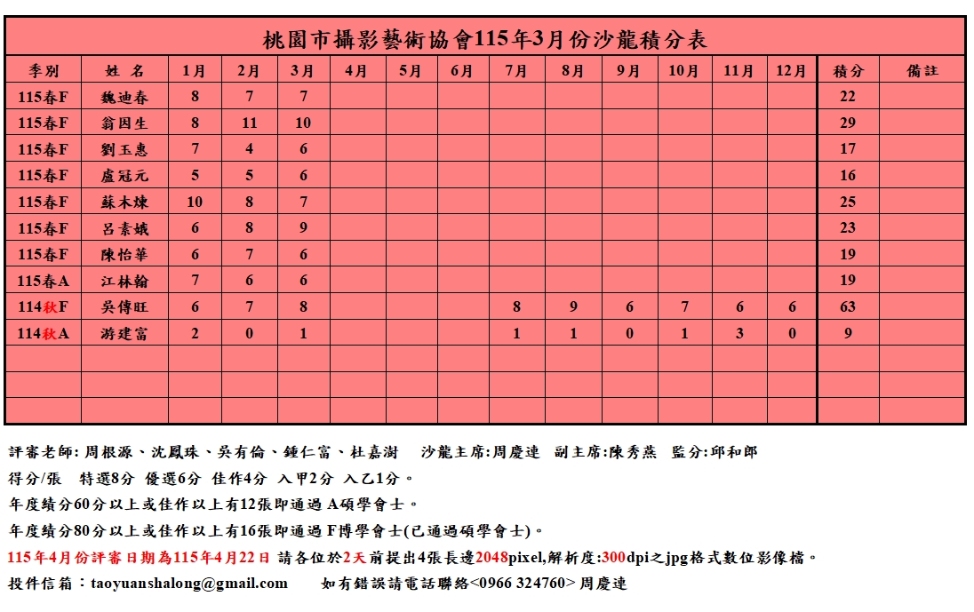 沙龍成績統計表
